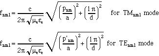 Cavity resonant frequencies are given by: